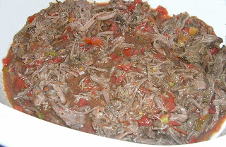 Place roast in slow cooker. Sprinkle with desired amount of cumin and garlic powder (I do about 1 tsp each). Cook on low for 5-6 hours. Shred roast and discard fat. Keep or discard meat juice in slow cooker for desired consistency. Pour jar of salsa onto shredded beef and mix. Cook 1 hour. Spoon over fajitas and add condiments. Serves 6. Super easy!