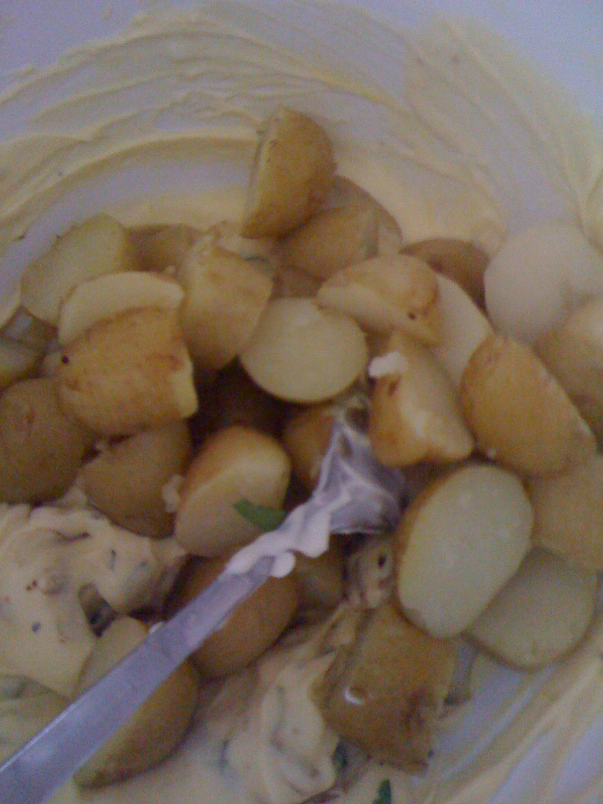 6. Place potatoes, eggs, bacon and dressing in a large bowl. Toss gently to combine.