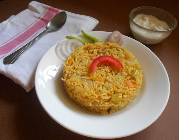 This Biryani Recipe has Curd, which makes this Tastier. I Personally felt, this Biryani gets little tangy taste from Curd and Tomatoes and also Lemon. So adding Chilli Powder for Spicyness is must. Altogether This Biryani tastes Spicy and Tangy with loads of Vegetables.